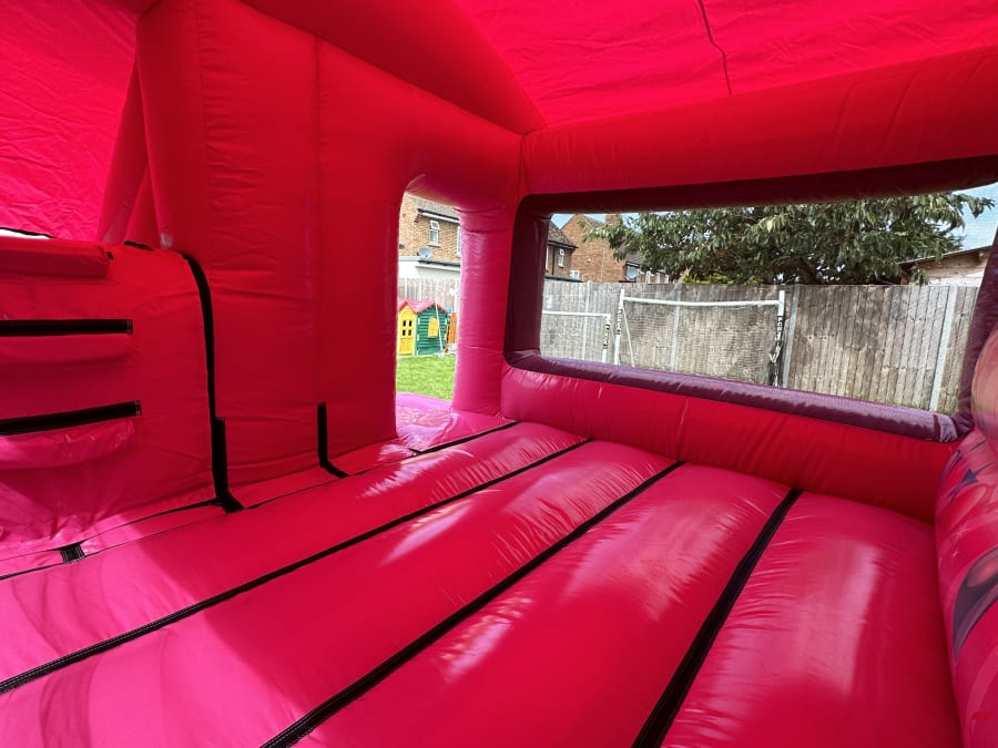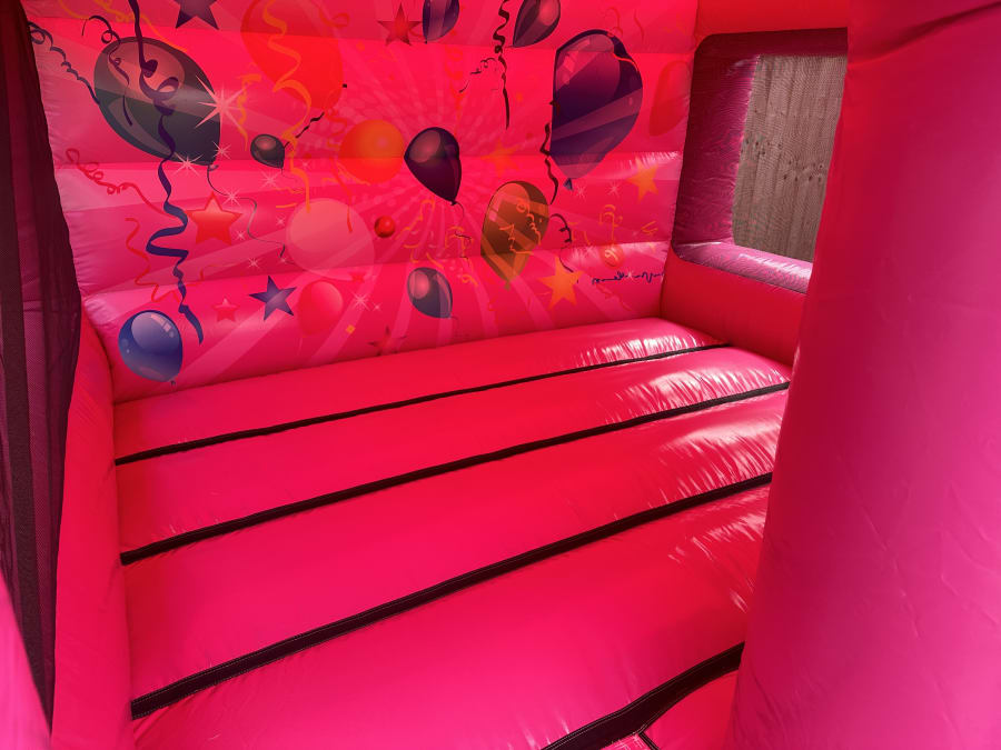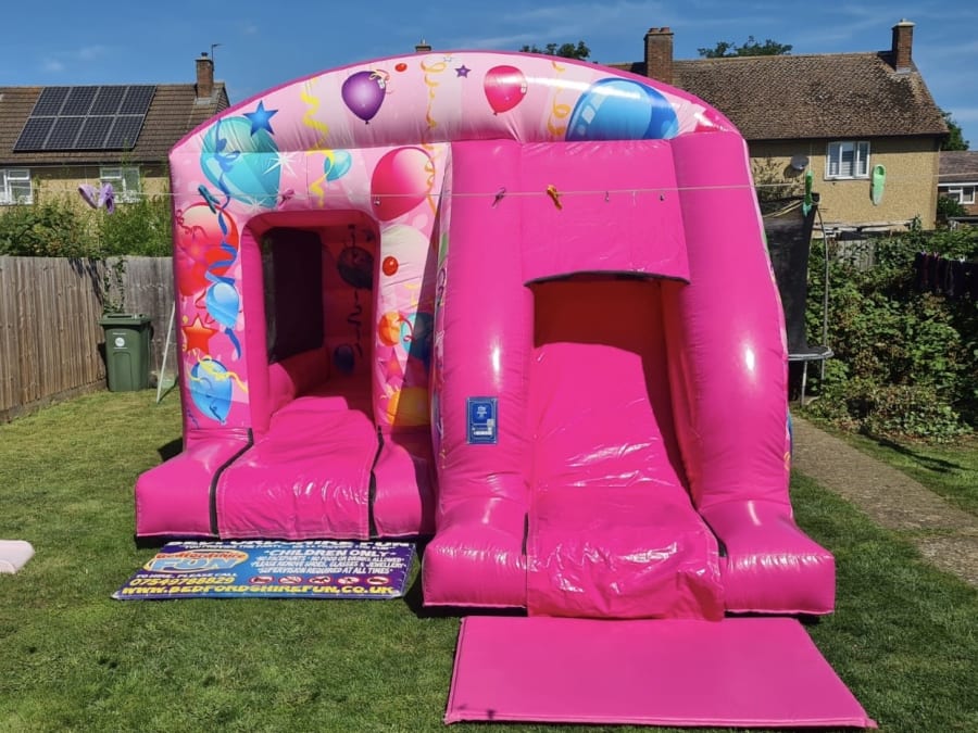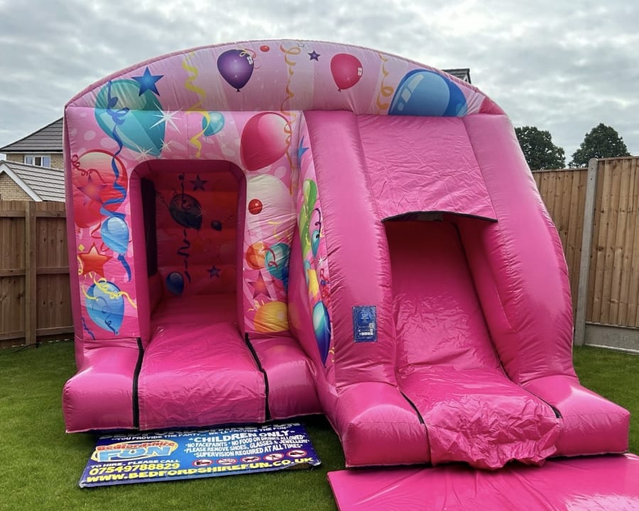 This Pink front Slide Combo is very popular at children's parties, get togethers and other occasions. With an attached fun slide and a large bouncing area it is suitable for outdoor use and fits in most village halls if you have an indoor event. A popular slide combo around Beds & Herts.