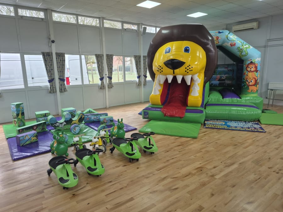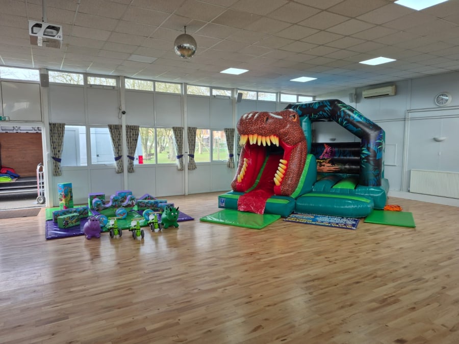 Bouncy castles must be under 11ft in this venue and set up in the corner by the main entrance as requested by the hall.
